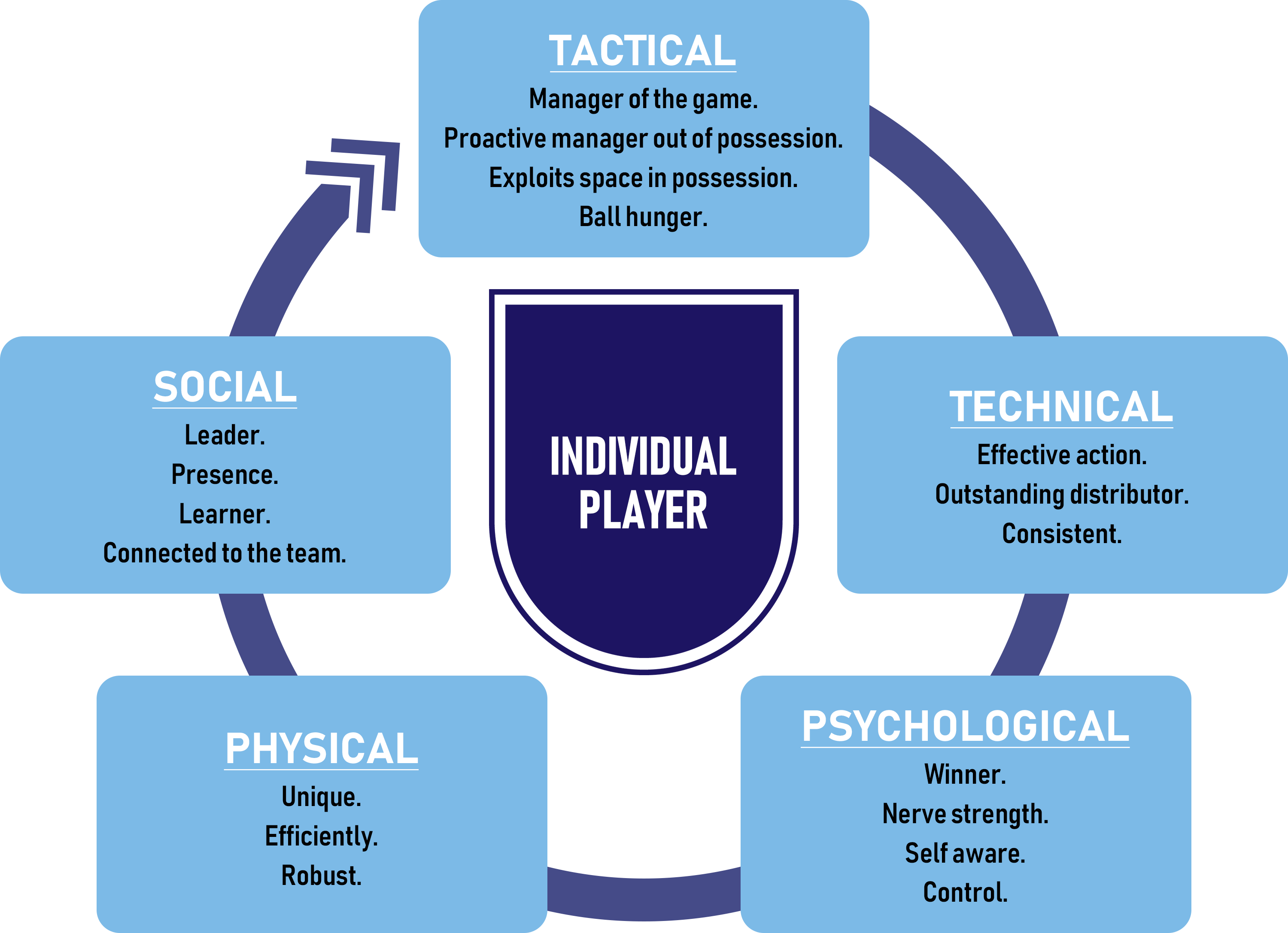 • This will involve players and coaches reflecting on their own performance and progress on a regular basis.